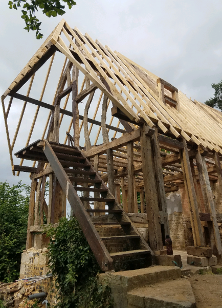 Chaque ouvrage ancien raconte quelque chose : dans ses matériaux, ses assemblages, son état de conservation. Restaurer une charpente ou une structure patrimoniale, c’est comprendre ces traces du passé, et y répondre avec justesse. Cela implique souvent de conserver l’existant, de réparer plutôt que remplacer, de réemployer des bois anciens, et de retrouver des gestes parfois oubliés.